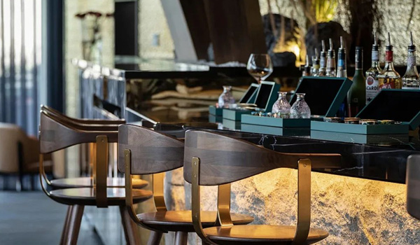 金属铁艺配合暖色灯光,在热情神秘的环境中更具仪式感,胡桃木材质搭配炽热的红色调背景,呈现高级空间的氛围。利用环绕的动线形式和灯光,为烧肉品酒爱好者营造一个绝妙的壶中天地。